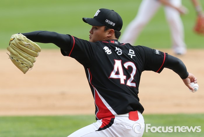 (서울=포커스뉴스) 1일 서울 잠실구장에서 열린 2016 프로야구 kt-LG 경기에서 kt 투수 홍성무가 3회말 2사 2루 상황에서 마운드에 올라 투구하고 있다.