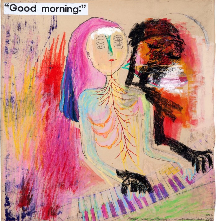 서성록 안동대 미술학과교수는 "김선숙 작가의 작품은 기존의 미술 흐름에 상관없이 자신만의 세계에 몰입해 있다. 다분히 고독하고 쓸쓸하면서도도 행복과 평화를 갈구하는 측면을 동시에 엿볼 수 있다"면서 "작가 내면의 심리를 감추지 않고 여성작가로서 지닌 고충을 자기만의 독특한 예술형식으로 승화시키고 있는 셈"이라고 평했다.김선숙 작가의 '나에게 무슨 일이 있었는지 묻지 말아요(59×59cm, 종이에 아크릴채색, 오일바, 파스텔, 2016)' 작품.<사진제공=김선숙>