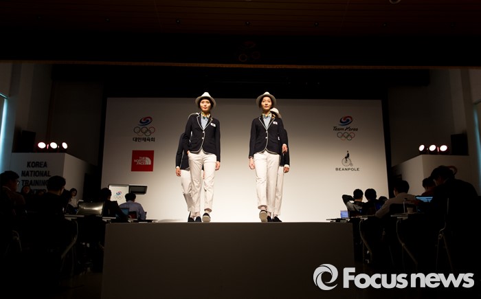 (서울=포커스뉴스) 27일 오후 서울 노원구 태릉선수촌에서 열린 제31회 리우하계올림픽대회 D-100일 미디어데이에서 레슬링 국가대표 김현우가 리우올림픽 선수단 단복을 선보이고 있다.