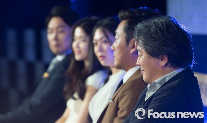 (서울=포커스뉴스) 2일 오전 서울 중구 웨스틴조선호텔에서 열린 영화 '아가씨' 제작보고회에 참석한 영화감독 박찬욱(사진 오른쪽)이 취재진에게 질문을 받고 있다.