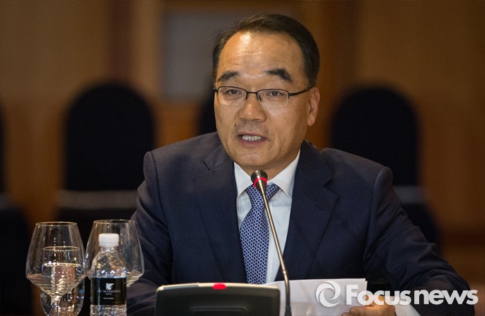 (서울=포커스뉴스) 박재완 전 기재부 장관이 28일 오후 서울 서초구 JW메리어트호텔에서 열린 역대 부총리 및 장관과의 만찬 간담회에서 모두발언 하고 있다.