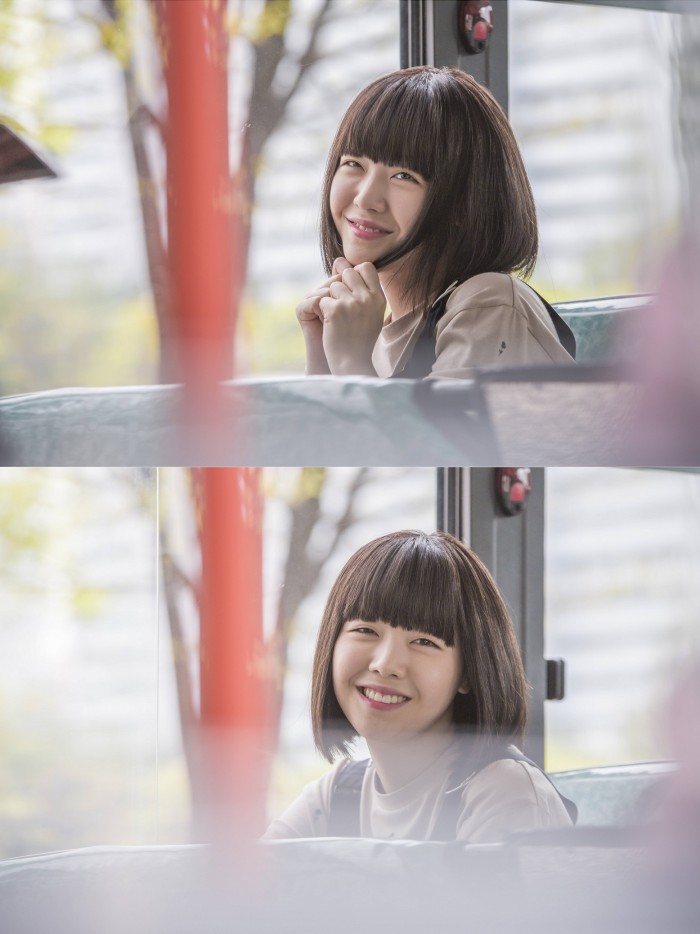 SBS는 30일 새 주말드라마 '미녀 공심이'의 여주인공 민아의 스틸 사진을 공개했다. 사진 속 민아는 일자 앞머리에 짧은 단발머리를 한 채 버스에 앉아 익살스러운 표정을 짓고 있다.