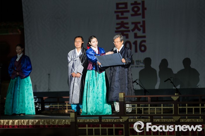 (서울=포커스뉴스) 29일 밤 경복궁 흥례문 광장에서 제 2회 궁중문화축전 개막제가 열리고 있다. '오늘, 궁을 만나다'를 주제로 열리는 2016년 궁중문화축전은 다채로운 프로그램들과 함께 5월 8일까지 열린다.