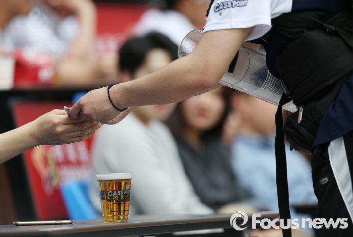 (서울=포커스뉴스) 더운 여름 날씨같은 5월 첫 날, 잠실구장에서 낮 경기로 열린 2016 프로야구 kt-LG 전. 최근 국세청이 야구장에서 맥주의 이동판매를 허용한뒤 맥주보이가 관중석을 돌아다니며 시원한 맥주를 관중에게 판매하고 있다.