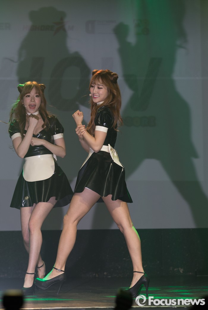 (서울=포커스뉴스) 26일 오후 서울 마포구 하나투어 브이홀에서 열린 여성듀오 코코소리의 싱글앨범 '절묘해' 발표 쇼케이스에 참석한 멤버들이 무대를 선보이고 있다.