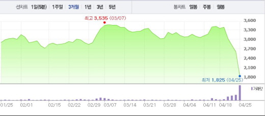 시가총액은 4476억원으로 연초 8682억원과 비교할 때 반토막이 났다.
