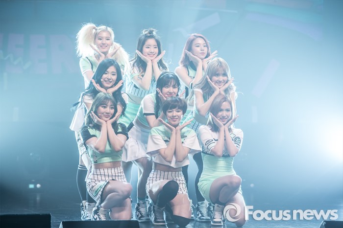 걸그룹 트와이스(나연‧정연‧모모‧사나‧지효‧미나‧다현‧채영‧쯔위)가 신곡 ‘치어 업 (CHEER UP)’으로 8개 음원차트를 올킬한 소감을 밝혔다. 25일 오후 서울 광진구 예스24 라이브홀에서 열린 두 번째 미니앨범 ‘페이지 투(PAGE TWO)’ 발매 기념 쇼케이스에서다.