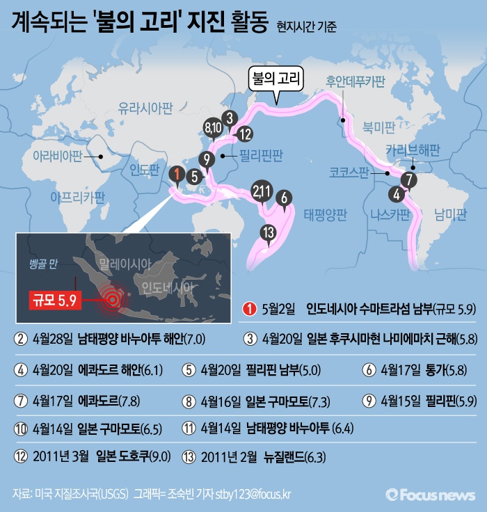 | △ [그래픽] 계속되는 '불의 고리' 지진 활동 |