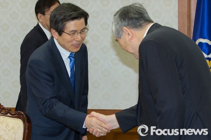 (서울=포커스뉴스) 황교안(왼쪽) 국무총리가 29일 오전 서울 종로구 정부서울청사에서 열린 평창동계올림픽지원위원회에 참석해 조양호 평창동계올림픽 조직위원장과 악수를 하고 있다.