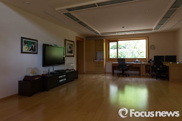 (김해=포커스뉴스) 고 노무현 전 대통령 서거 7주기를 앞두고 1일 오전 노 전 대통령의 사저가 공개되고 있다. 사진은 안채의 거실.