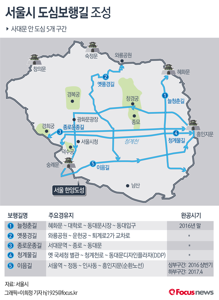 (서울=포커스뉴스) '이음길', '옛풍경길'. '늘청춘길', '종로운종길', '청계물길'.