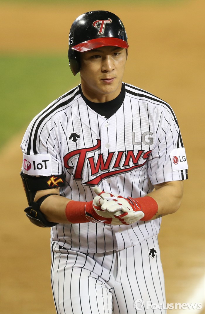 (서울=포커스뉴스) 29일 서울 잠실구장에서 열린 2016 프로야구 kt-LG 경기 5회말 LG 선두타자 오지환이 동점 우월 솔로 홈런을 치고 박수치며 홈인하고 있다.
