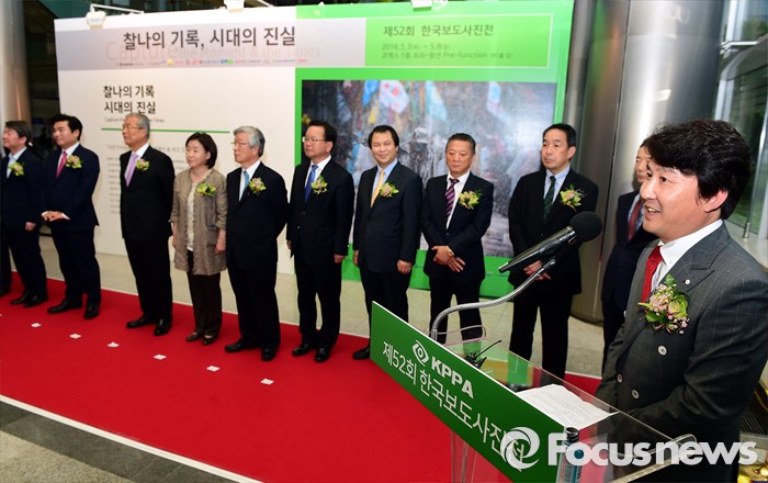 (서울=포커스뉴스) 3일 오전 서울 강남구 코엑스에서 열린 '52회 한국보도사진전 개막식'에 참석한 이동희 한국사진기자협회장이 인사말을 하고 있다. '찰나의 기록, 시대의 진실'을 주제로 진행된 이번 전시는 시대의 진실을 기록한다는 사명감으로 역사의 현장을 묵묵히 지키며 취재한 수백만 컷 중 선정된 150여점과 '현장의 사진기자', '역대 대상 수상작' 등 250여점의 사진이 전시된다.