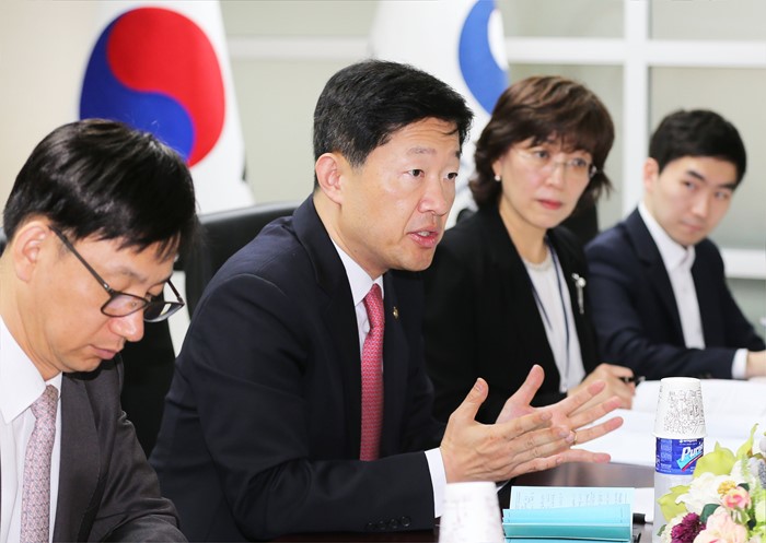 (서울=포커스뉴스) 우태희 산업통상자원부 2차관이 3일 오후 서울 종로구 정부서울청사 집무실에서 아케베 오쿠바이 메티쿠(ARKEBE Oqubay Metiku) 에티오피아 총리 특별보좌관(장관급)의 예방을 받고, 한-에티오피아 양국간 경제협력과 한국기업의 에티오피아 섬유공단 투자 등에 관해 의견을 교환하고 있다. <사진제공=산업통상자원부>