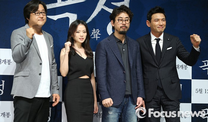 '곡성'은 나홍진 감독이 '황해' 이후 6년 만에 국내 영화에 복귀한 작품이다. 곽도원, 천우희, 황정민 등이 작품에서 열연했다. 이는 오는 5월 12일 개봉해 관객과 만날 예정이다.(서울=포커스뉴스) 7일 오전 서울 강남구 압구정 CGV에서 열린 영화 '곡성' 제작보고회에 참석한 배우 곽도원(왼쪽부터), 천우희, 나홍진(감독), 황정민이 포토타임을 갖고 있다. 2016.04.07 김유근 기자 '곡성'에서 종구 역의 곽도원, 무명 역의 천우희, 일광 역의 황정민(좌측부터) 캐릭터 포스터. <사진제공=폭스 인터네셔널>