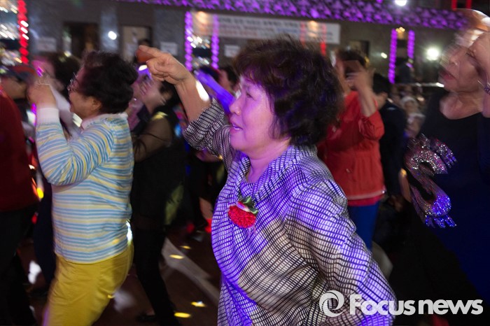 (서울=포커스뉴스) 어버이날을 앞두고 4일 오전 서울 중랑구 한국관나이트클럽에서 열린 '유린 어르신 효축제'에 참석한 시민들이 축제를 즐기고 있다.