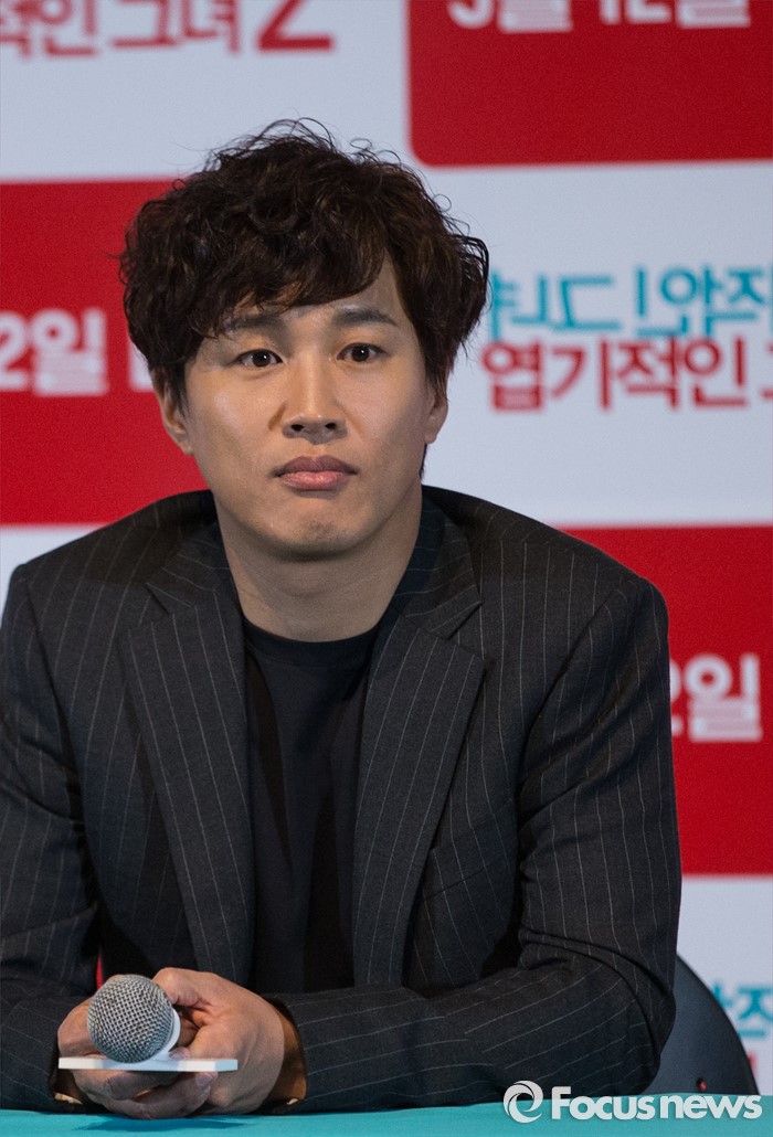 (서울=포커스뉴스) 4일 오후 서울 광진구 롯데시네마 건대입구점에서 열린 영화 '엽기적인 그녀2' 언론시사회에 참석한 배우 차태현이 취재진에게 질문을 받고 있다.