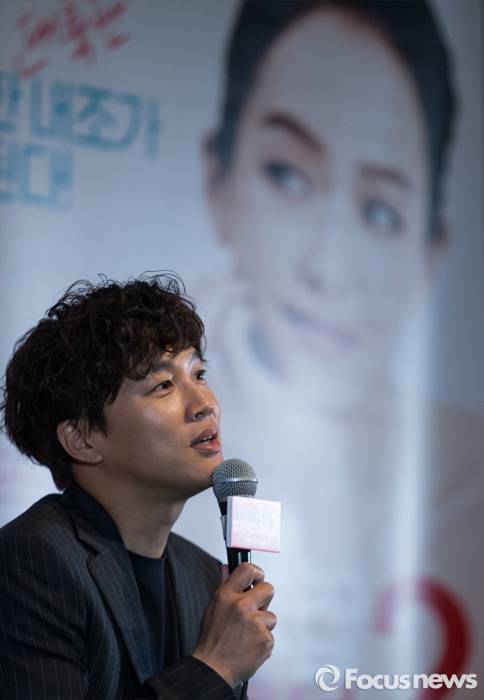 (서울=포커스뉴스) 4일 오후 서울 광진구 롯데시네마 건대입구점에서 열린 영화 '엽기적인 그녀2' 언론시사회에 참석한 배우 차태현이 취재진의 질문에 답하고 있다.