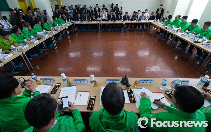 (인천=포커스뉴스) 안철수 국민의당 상임공동대표와 20대 총선 당선자들이 4일 오후 인천 남동구 (주)서울화장품 인천공장에서 열린 국민의당 정책역량 강화 집중 워크샵'중소기업 대표 및 근로자와의 간담회'에 참석해 한광석 서울화장품 회장의 인사말을 듣고 있다.