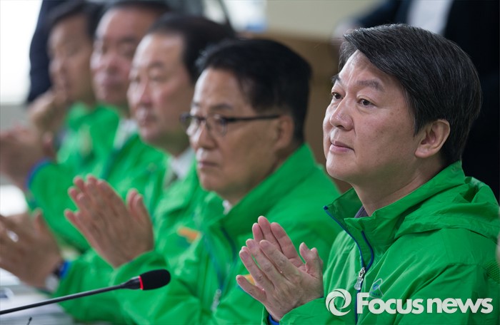 (인천=포커스뉴스) 4일 오후 인천 남동구 (주)서울화장품 인천공장에서 열린 국민의당 정책역량 강화 집중 워크샵'중소기업 대표 및 근로자와의 간담회'에서 안철수(오른쪽) 국민의당 상임공동대표를 비롯한 20대 총선 당선자들이 박수치고 있다.