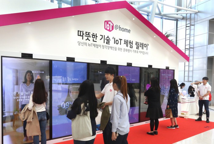 이번 체험 릴레이 행사는 이달 말까지 영등포 타임스퀘어 1층 아트리움에서 진행된다. 온△오프라인 참여자가 5만명이 달성되면 6월~7월에 개봉되는 영화시사회에 청각장애인 가족을 초청할 예정이다.LG유플러스는 영등포 타임스퀘어에서 IoT를 직접 체험할 수 있는 행사를 개최한다.<사진제공=LG유플러스>