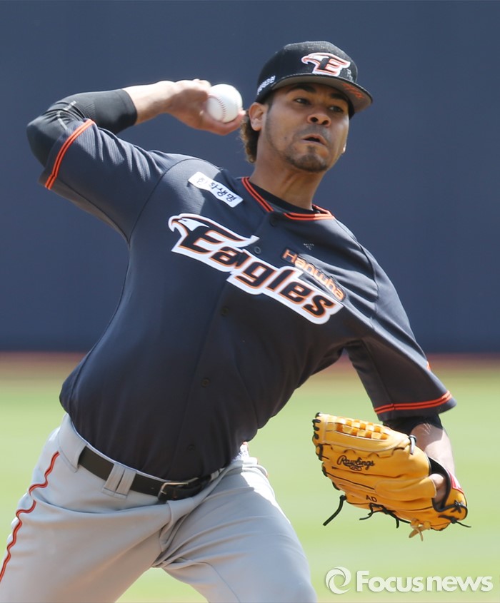 △ 올 시즌 첫 등판한 한화 선발투수 로저스의 투구