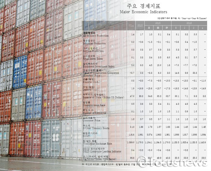 그러나 민간소비 등 일부 지표의 개선에도 경제 전반의 성장세는 여전히 낮다는 판단을 내놓고 있다. 이는 수출 감소에 주로 기인한 제조업과 설비투자의 부진이 우리 경제의 성장세를 제약하고 있다는 분석에서다.