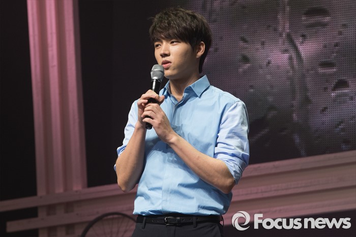 (서울=포커스뉴스) 9일 오후 서울 광진구 예스24라이브홀에서 열린 첫 솔로 미니앨범 발매 기념 프레스 쇼케이스에서 인피니트의 가수 남우현이 인사말을 하고 있다.
