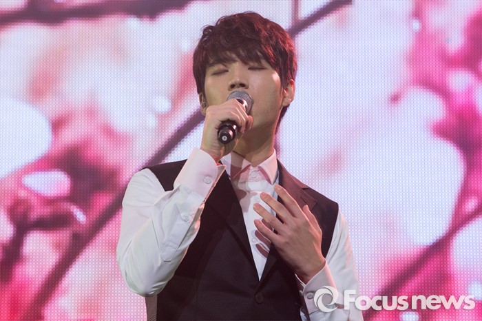 (서울=포커스뉴스) 9일 오후 서울 광진구 예스24라이브홀에서 열린 첫 솔로 미니앨범 발매 기념 프레스 쇼케이스에서 인피니트의 가수 남우현이 멋진 무대를 선보이고 있다.