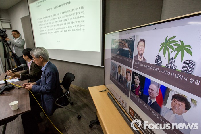 뉴스파타는 "유 씨가 단독 주주 겸 이사였고 혼자 계좌 운영권을 갖고 있었기 때문에 페이퍼 컴퍼니를 그대로 유지하고 있었다면 홍콩 계좌도 론스타 관련 업무에 이용했을 가능성을 배제할 순 없다"고 주장했다.(서울=포커스뉴스) 김용진 뉴스타파 대표가 4월4일 오전 서울 중구 성공회빌딩에서 '2016 조세도피 한국인 발표'를 하고 있다. 강진형 기자
