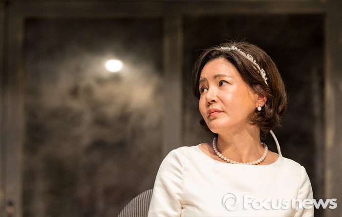 (서울=포커스뉴스) 10일 오후 서울 종로구 동숭아트센터에서 열린 연극 '장수상회' 프레스콜에 참석한 배우 김지숙이 취재진의 질문을 듣고 있다.