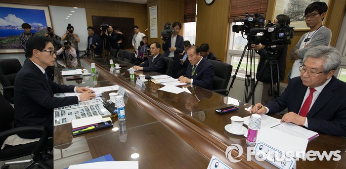 (세종=포커스뉴스) 이준식(왼쪽) 사회부총리 겸 교육부장관이 10일 오후 세종시 정부세종청사 교육부 중회의실에서 열린 전국시도교육감협의회 회장단 간담회에 참석해 인사말을 하고 있다.