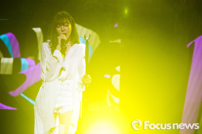 (서울=포커스뉴스) 솔로 활동에 나선 소녀시대 티파니가 10일 오후 서울 강남구 삼성동 코엑스 아티움에서 열린 쇼케이스에서 앨범 수록곡을 선보이고 있다.