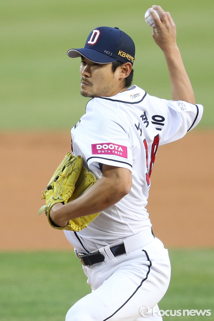 | △ 역투하는 두산 선발투수 노경은 |