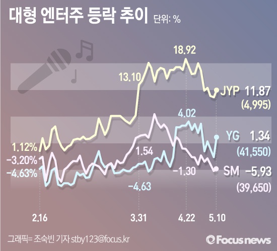 | △ [그래픽] 대형 엔터주 등락 추이 |