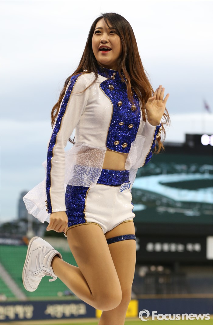 (서울=포커스뉴스) 10일 서울 잠실구장에서 열린 2016 프로야구 삼성-LG 경기에서 삼성 치어리더가 승리를 부르는 손짓으로 관중들의 응원을 유도하고 있다.