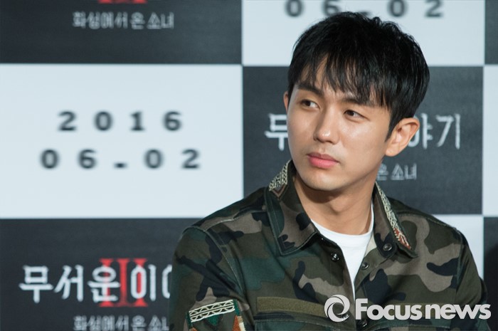 (서울=포커스뉴스) 11일 오전 서울 광진구 롯데시네마 건대입구점에서 열린 영화 '무서운이야기3' 제작보고회에 참석한 배우 임슬옹이 취재진에게 질문을 받고 있다.