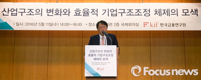 (서울=포커스뉴스) 신성환 한국금융연구원장이 11일 오후 서울 중구 전국은행연합회관에서 열린 '산업구조의 변화와 효율적 기업구조조정 체제의 모색 세미나'에 참석해 인사말을 하고 있다.
