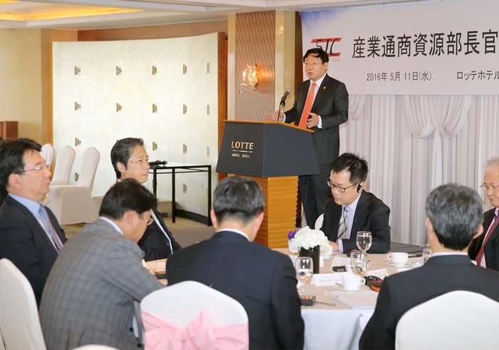 (서울=포커스뉴스) 주형환 산업통상자원부 장관이 11일 오후 서울 중구 소공동 롯데호텔에서 양국 기업간 투자분야 협력방안과 주한일본기업의 對정부 건의 해소방안 논의를 위해 열린 '서울재팬클럽(SJC) 오찬 간담회'에 참석해 인사말을 하고 있다.