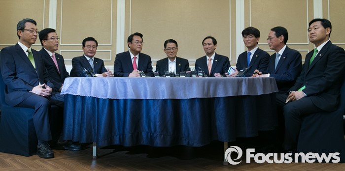 한편, 화기애애한 분위기 속에서 진행된 이날 회동에선 야당 원내대표들이 정진석 새누리당 원내대표를 향해 주요 법안의 처리를 압박하기도 했다.