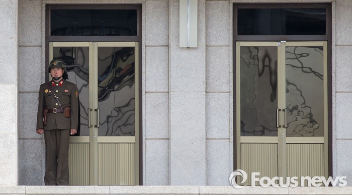 (파주=포커스뉴스) 빈센트 브룩스 신임 한·미연합사령관 겸 주한미군사령관과 이순진 합참의장이 12일 오후 경기도 파주시 판문점 공동경비구역(JSA)을 방문, 북한군 병사들이 미군과 남측 인원들을 주시하고 있다.