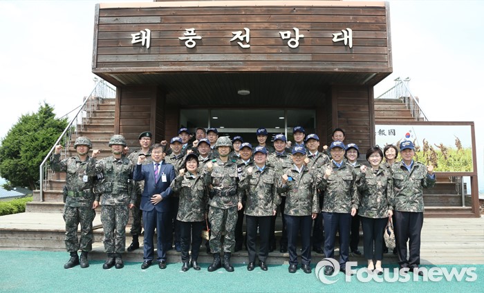 | △ 군 관계자들과 기념촬영하는 국민의당 |