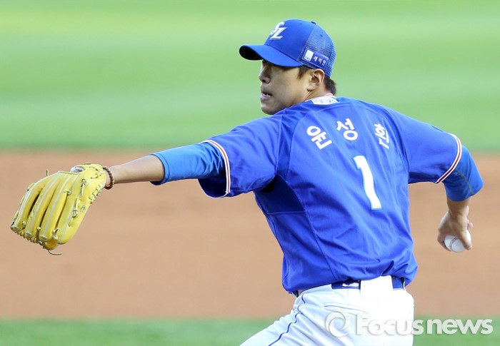 (서울=포커스뉴스) 12일 서울 잠실구장에서 열린 2016 프로야구 삼성-LG 경기에서 1회말 삼성 선발투수 윤성환이 투구하고 있다.
