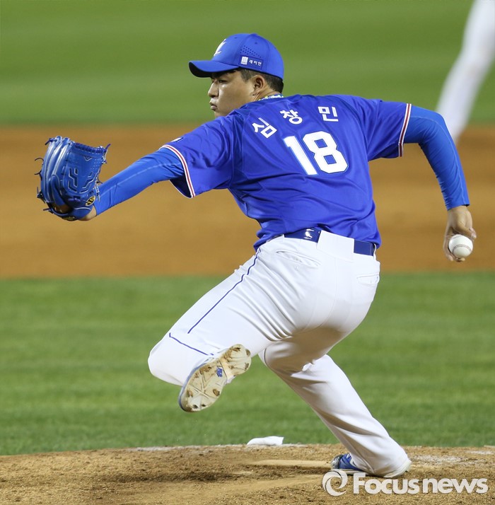 (서울=포커스뉴스) 12일 서울 잠실구장에서 열린 2016 프로야구 삼성-LG 경기에서 9회말 마운드에 오른 삼성 투수 심창민이 힘차게 공을 뿌리고 있다.