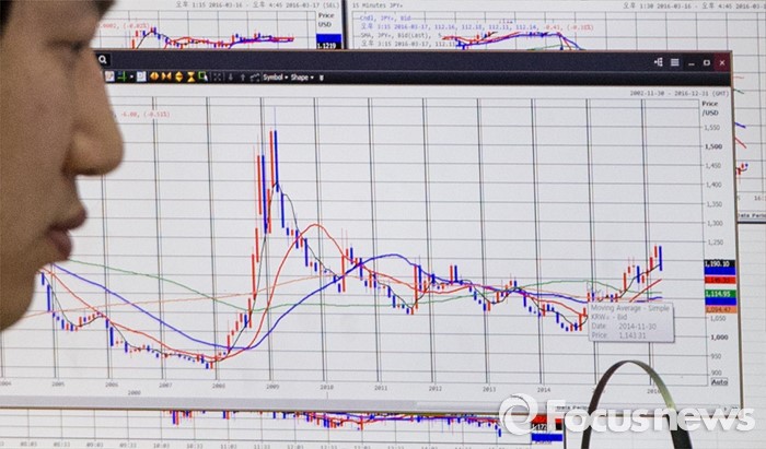 전승지 삼성선물 연구원은 "금통위에서는 금리 동결이 예상되나 이주열 총재의 금리 인하 시사 가능성 등 발언에 따라 원·달러 환율 변동성을 키울 것"이라고 말했다.(서울=포커스뉴스) 서울 중구 KEB외환은행 본점 딜링룸에서 한 직원이 원달러환율 그래프를 주시하고 있다. 양지웅 기자