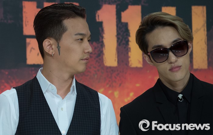 (서울=포커스뉴스) 13일 오전 서울 영등포구 타임스퀘어 아모리스홀에서 열린 Mnet '쇼미더머니5' 제작발표회에 참석한 작곡가 쿠시(왼쪽)와 가수 자이언티가 포토타임을 갖고 있다.