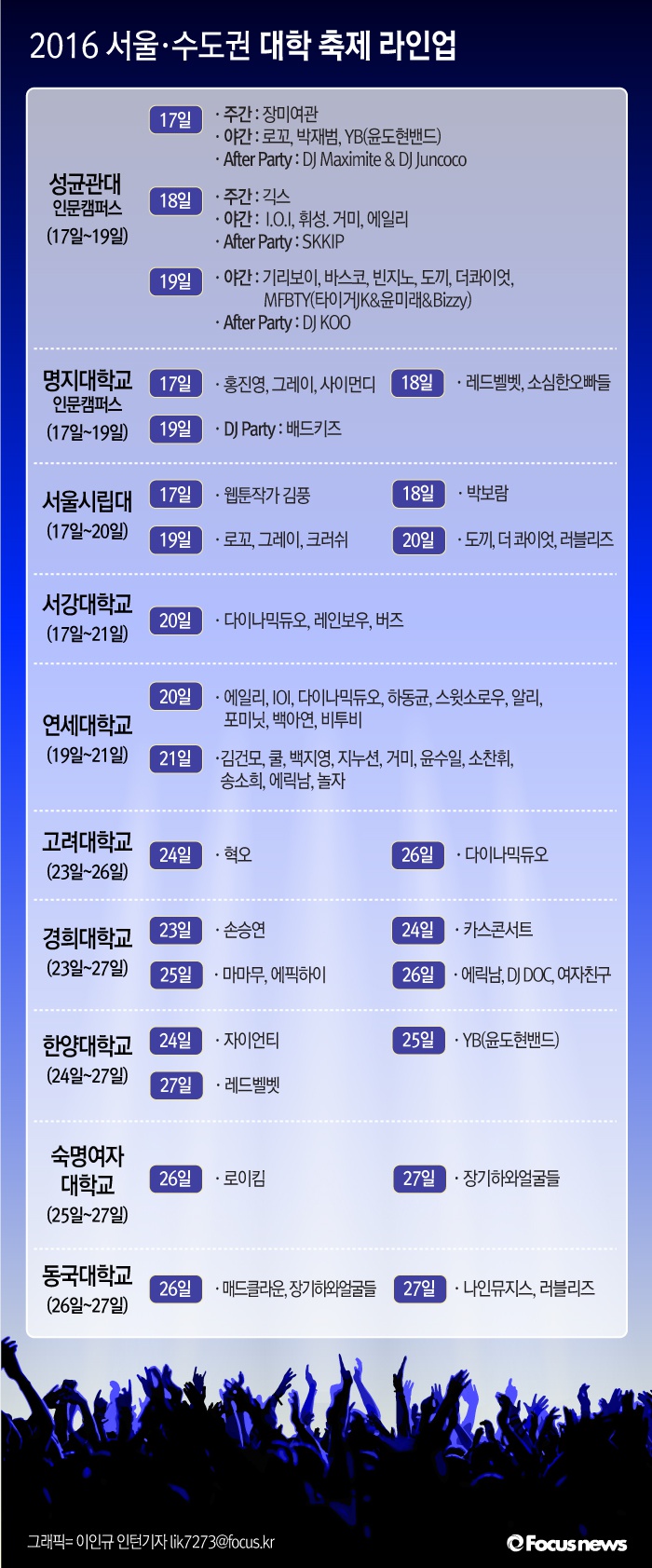 | △ [그래픽] 2016 서울·경기권 주요 대학 축제 라인업 |