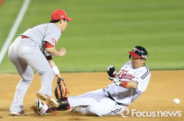 (서울=포커스뉴스) 13일 서울 잠실구장에서 열린 2016 프로야구 SK-LG 경기 6회말 LG 선두타자 이병규가 중견수를 넘기는 3루타를 치고 3루에서 슬라이딩하고 있다.