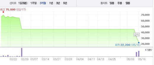 삼부토건은 지난 2월26일 보통주 880만여주를 148만여주로 줄이는 1차 감자를 단행했고, 이후 유상증자를 통해 6078만여주 신주를 발행했다. 이를 다시 623만주로 줄이는 2차 감자를 실시하면서 거래가 2달 이상 중단됐다.주가흐름<사진출처=네이버 캡쳐>