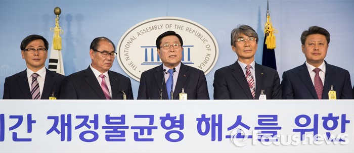 (서울=포커스뉴스) 한상기 태안군수를 비롯한 전국 농어촌지역 군수협의회 회장단이 16일 오전 서울 여의도 국회 정론관에서 정부의 지방재정개혁 이행 촉구 기자회견을 하고 있다.
